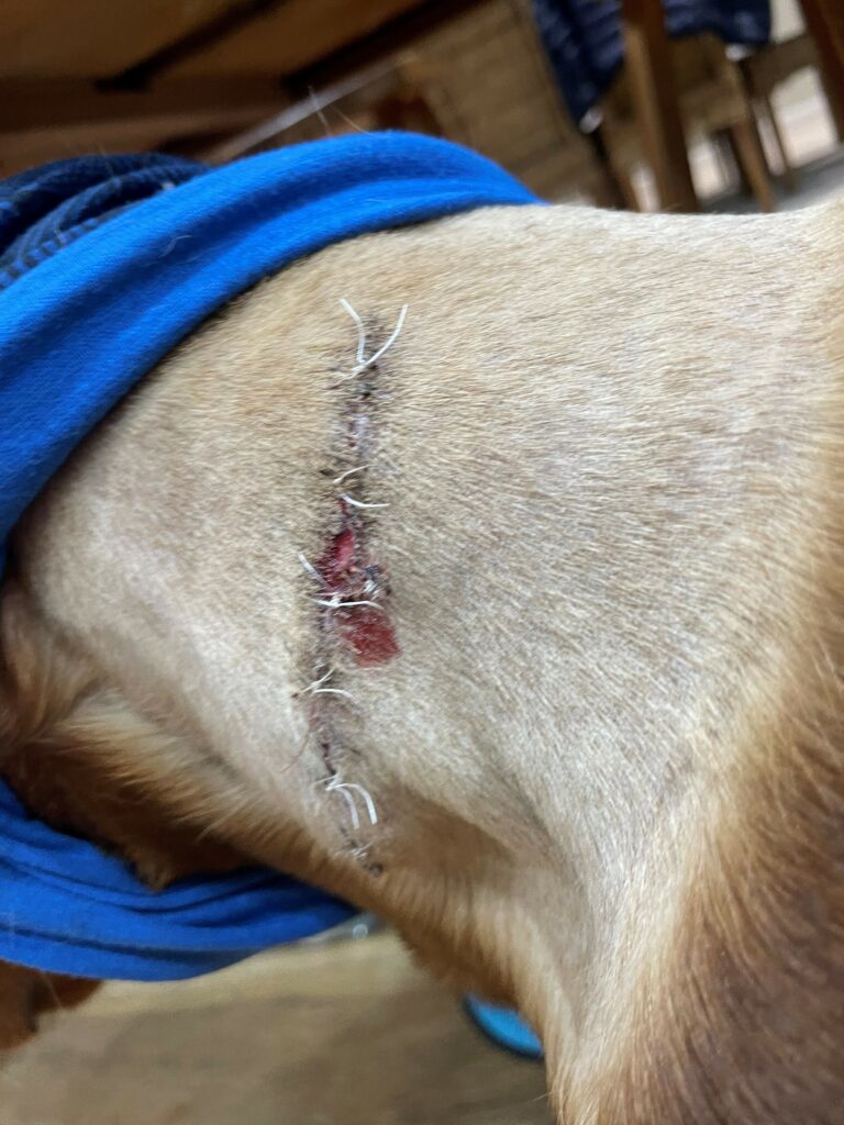 We owe a massive thank you to the team at Ash Tree Vets. Dingo required emergency surgery to clean and repair the injury. It actually was worse than we initially thought once the vet had him on the table.