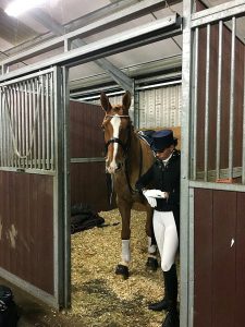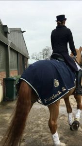 Day Two and we competed in the PSG. He hadn’t eaten his breakfast that morning so despite him looking chilled I knew that he wasn’t quite 100% settled. In the warm up he came out super fresh!! Any little bang or another horse coming too close and he was having mini little spurts of enthusiasm!! Generally though once he got going and started to concentrate he then felt much better than the day before! I thought “Yes this is more like it!” He felt more together and quieter in his mouth then on to our test…. We probably couldn’t have had many more mistakes in it if we tried! He got stuck in one of his walk pirouettes, he changed late behind after one of our half passes, we did a flying change just after one of our canter pirouettes near X (we were meant to wait until C), in our 4x changes he popped in a 3 and coming back from our extended canter where we were supposed to collect and do a flying change… He broke into trot!!!!!!! So it wasn’t quite our day and we got a score of 62%! It was so disappointing at the time but looking back now with Villu, I have to remember that after everything we have been through with him it’s just amazing to even be back out there competing at this level again with him. Although it wasn’t our best weekend at least he was feeling fresh and well and that he is fit and healthy to go out and do it all again!
