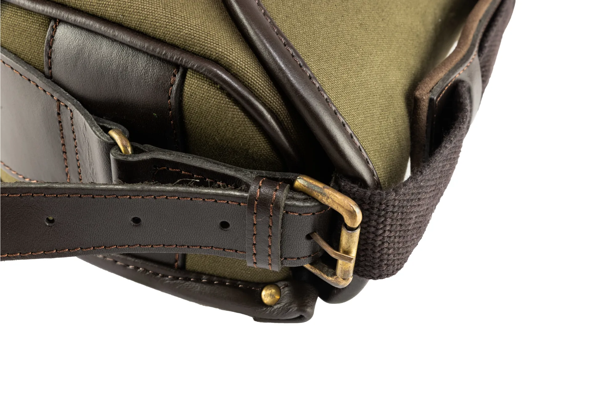 Combining country style and a large cartridge capacity the Jack Pyke canvas cartridge bag is a perfect addition to your outdoor pursuits apparel. The faux leather trim and metal buckles create a sought-after rustic look and speedloader style opening allows quick access to your cartridges. Thanks to an adjustable strap and the addition of a cushioned shoulder pad, the Jack Pyke canvas cartridge bag is comfortable to carry on a long shoot day.
