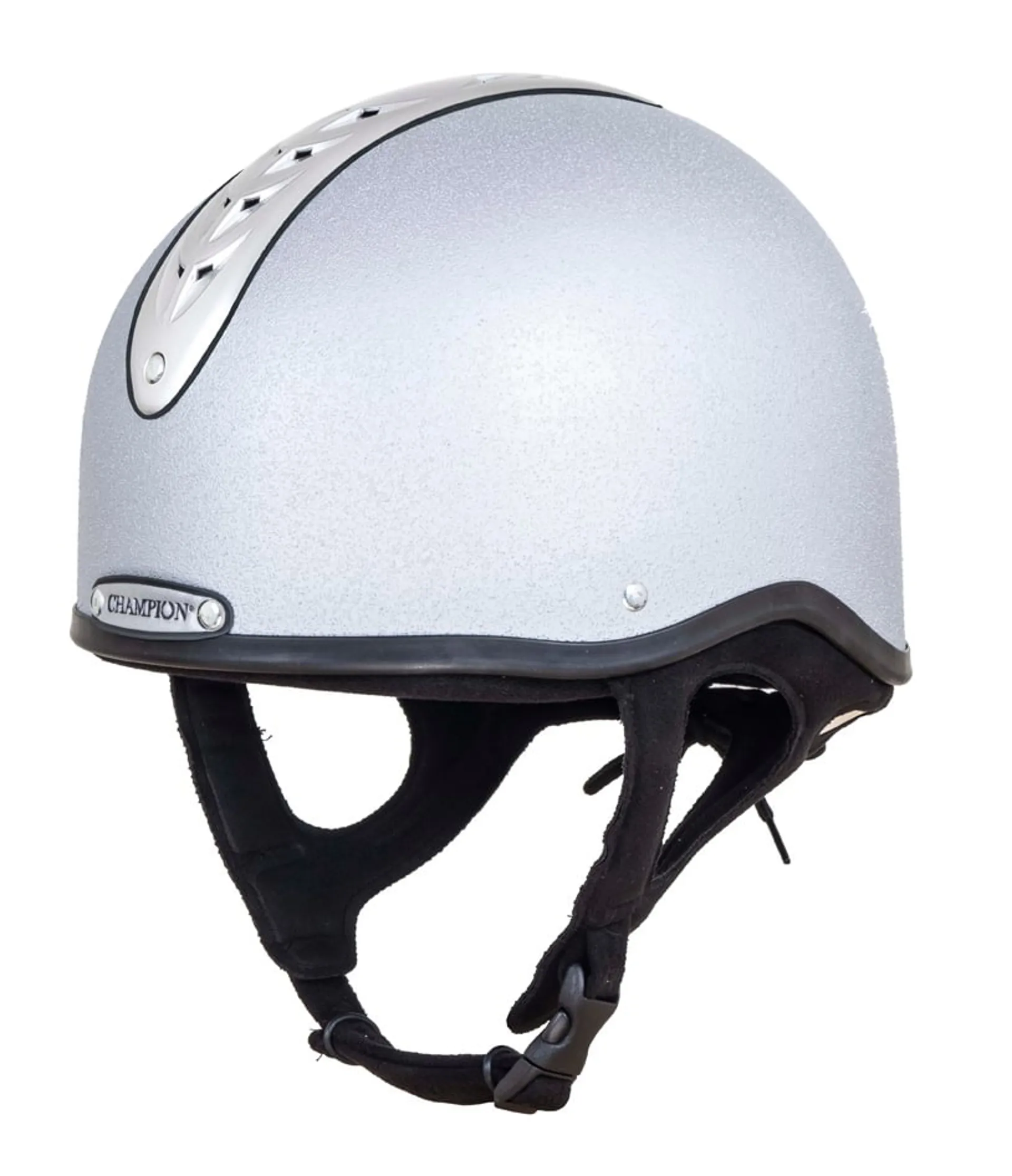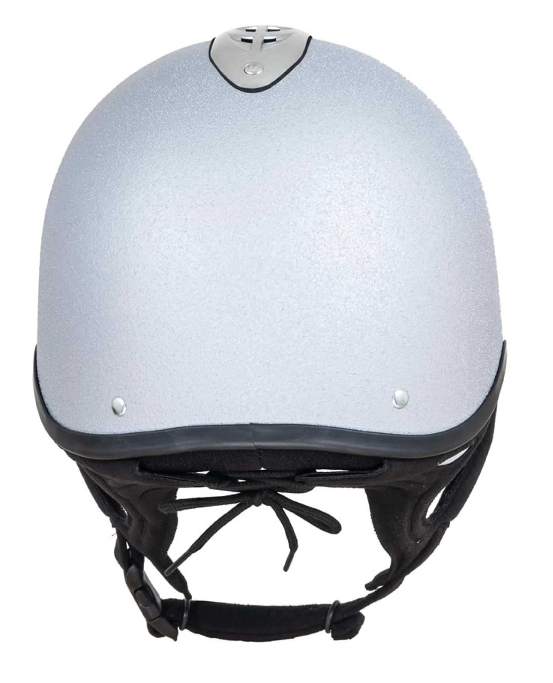 Designed with a secure, adjustable harness and a sleek silver finish, this jockey skull offers both performance and practicality.