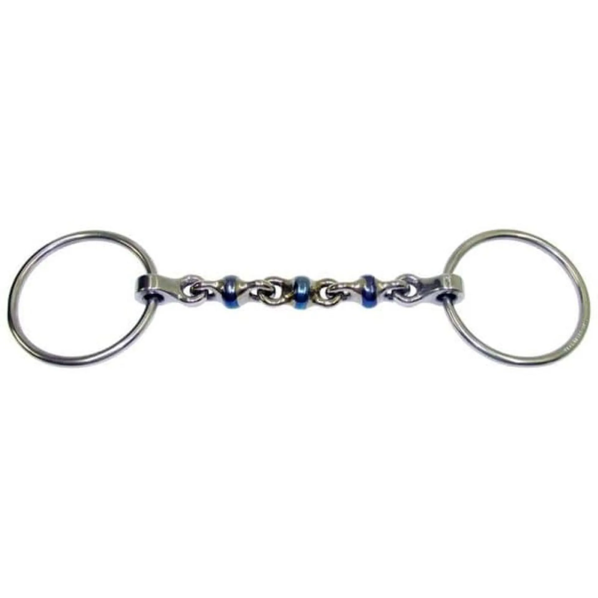 The Waterford Barrel has many smooth flexible barrels which spread the pressure slightly more than the bobble/ball version, making it a little lighter in pressure. The Barrel’s also mean that there is a smooth surface against the horse’s lips preventing the lips from getting pinched. The Loose Ring allows for immediate release and relief from tongue and bar pressure. The bit is immediately reset to a neutral position in the horse’s mouth. When sizing for this bit it is important to size up. Please get in touch if you need any help.