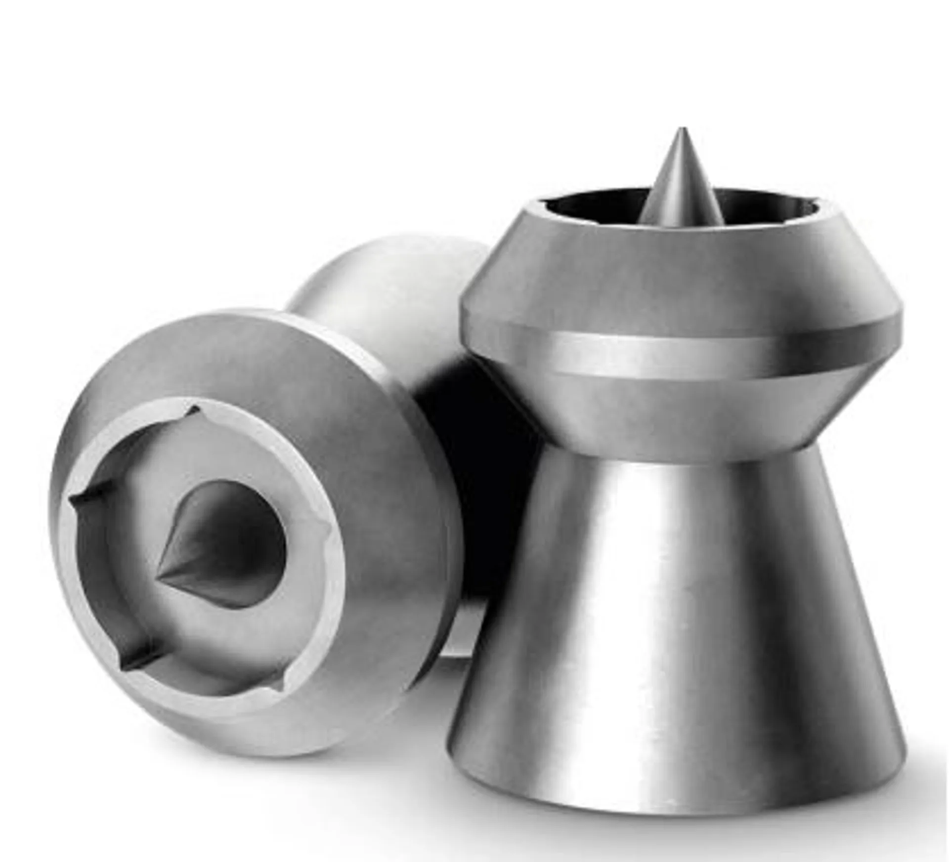The H&N Terminator .22 caliber is a specialised hunting pellet designed for high impact and rapid expansion. It features a unique aerodynamic shape that combines a hollowpoint base with a small lead tip in the centre, allowing it to cut through the air cleanly before delivering massive energy transfer upon hitting the target.