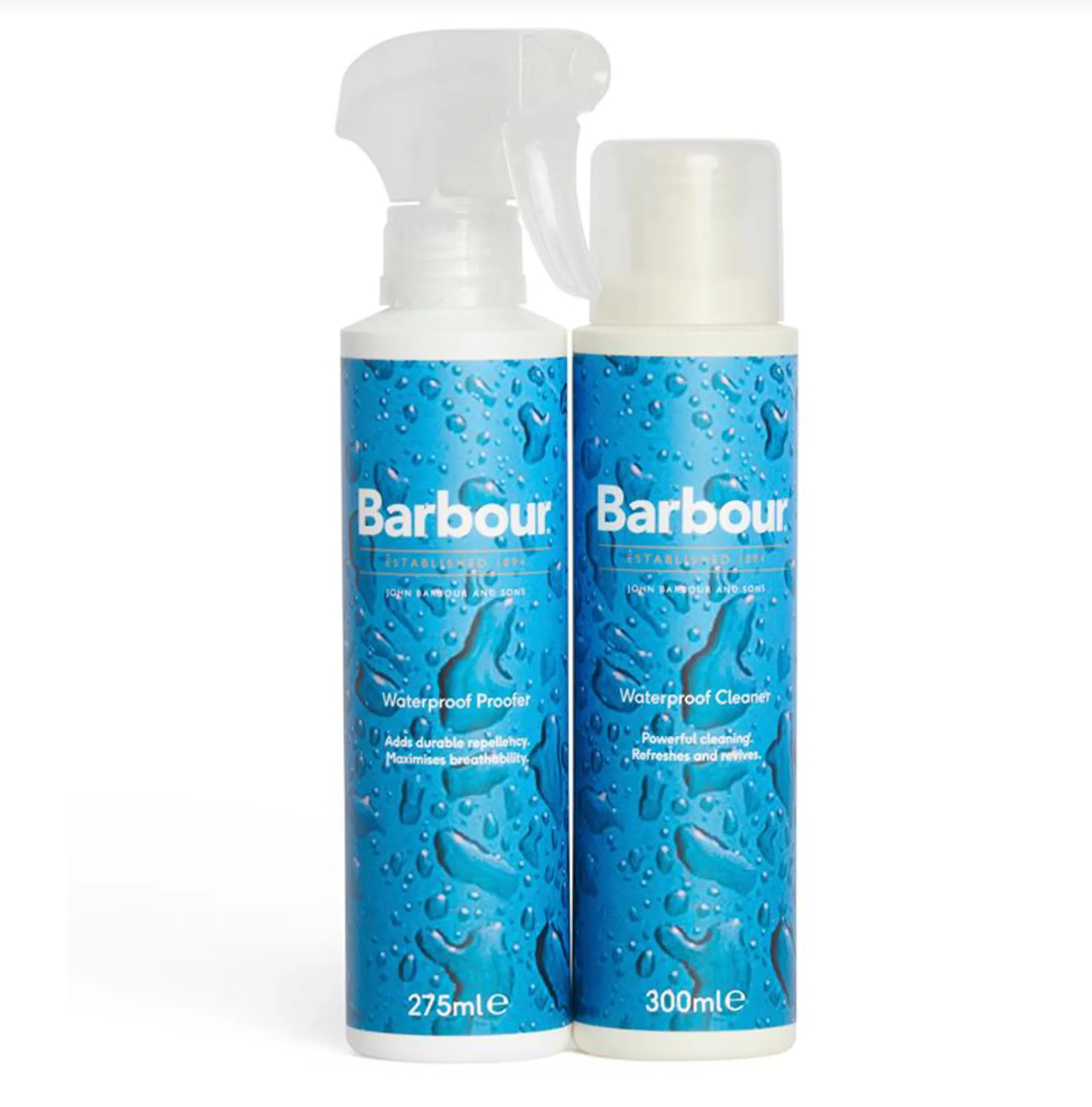 The Barbour Waterproof Jacket Care Kit offers a simple two-step process to bring your favourite Barbour waterproof jackets back to life.